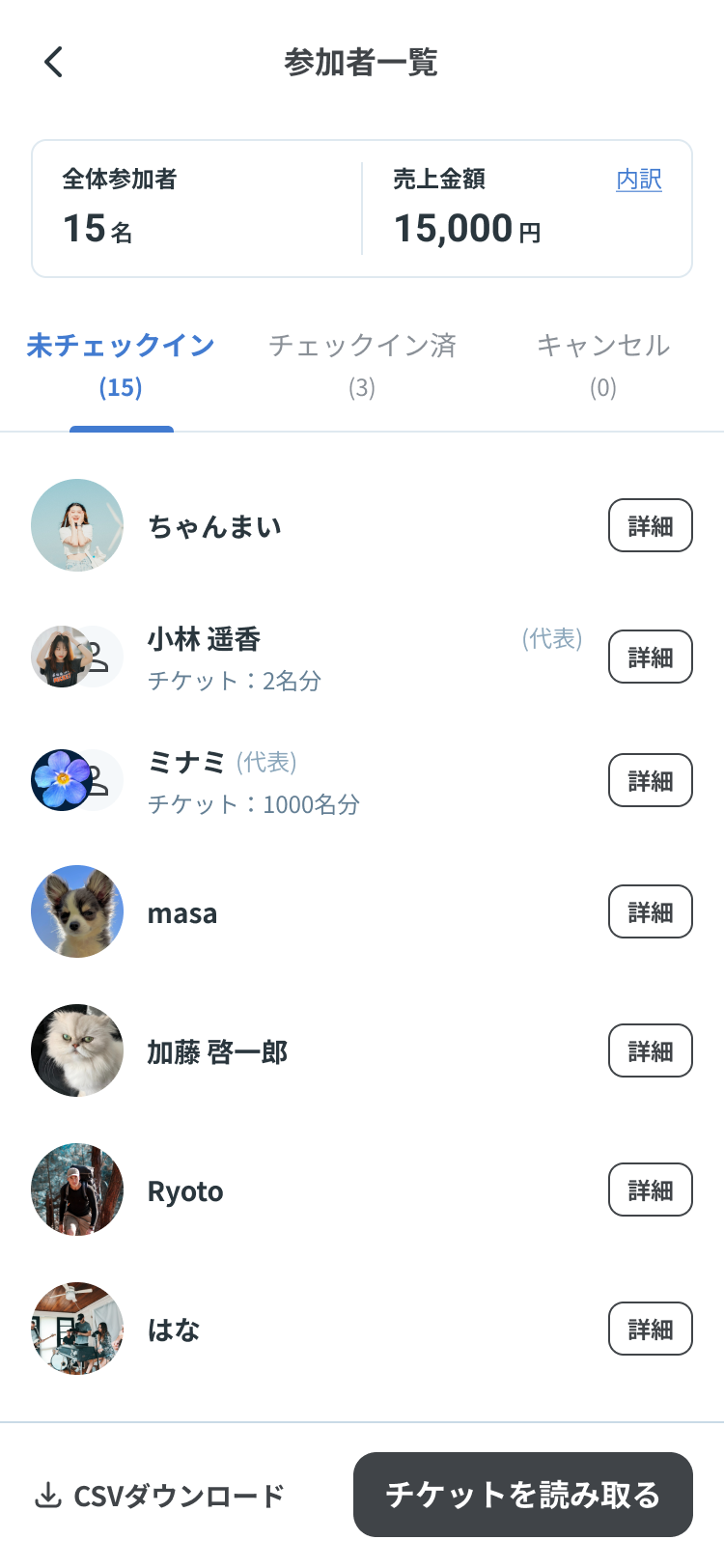 参加者リストの自動更新・定員管理・CSV出力でデータ活用も簡単。